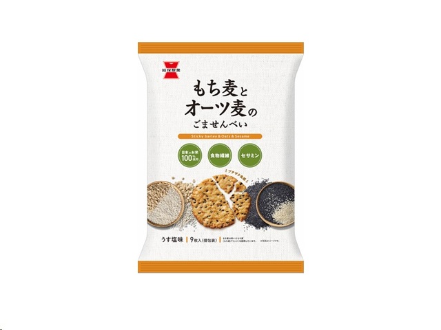 岩塚製菓 もち麦とオーツ麦のごませんべい 9枚x12 *