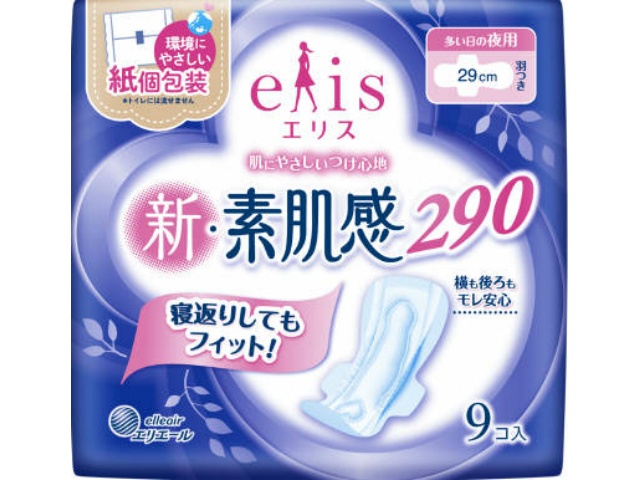大王製紙 エリス 新・素肌感 (多い日の夜用) 羽つき 9枚