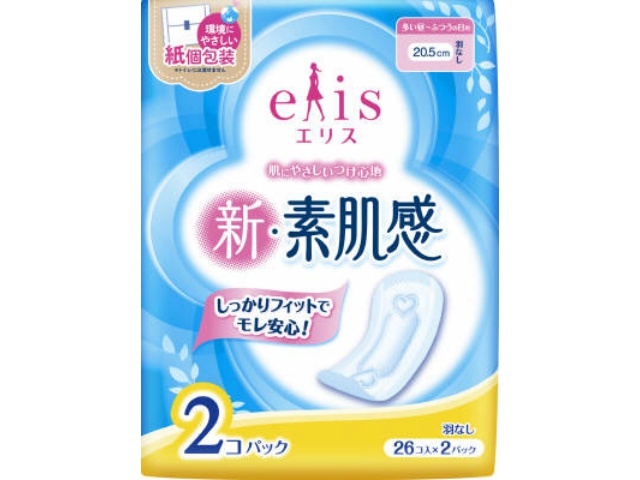 大王製紙 エリス 新・素肌感 (多い昼〜ふつうの日用) 羽なし 26枚×2P