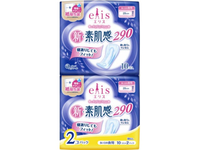 大王製紙 エリス 新・素肌感 (多い日の夜用) 羽なし 10枚×2P