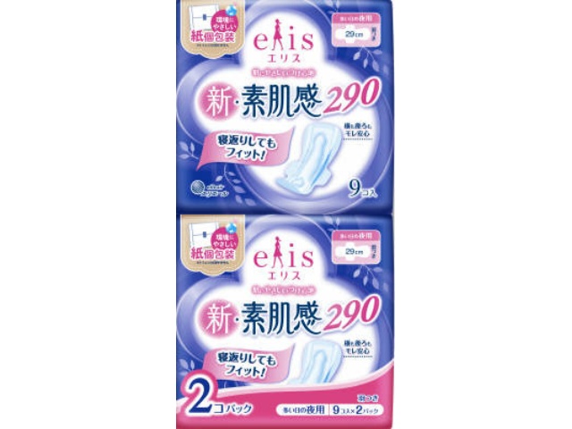 大王製紙 エリス 新・素肌感 (多い日の夜用) 羽つき 9枚×2P
