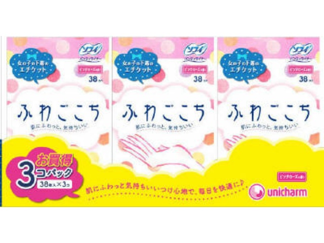 ユニ・チャーム ソフィふわごこちピンクローズの香り 38枚X3 x1