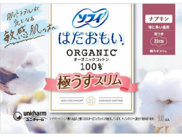 ユニ・チャーム ソフィはだおもいオーガニックコットン極うすスリム特に多い昼用230羽つき15枚 15枚