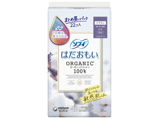 ユニ・チャーム ソフィはだおもいオーガニックコットン特に多い昼用26cm 羽つき22枚x24