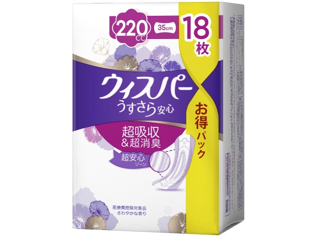 P&Gジャパン ウィスパ− うすさら安心 特に多い時も1枚で安心 220cc 18枚