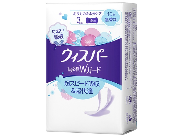 P&G ウィスパー1枚2役Wガード 3cc 無香料 40枚