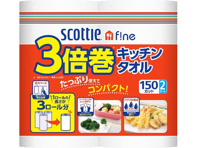 日本製紙クレシア SCT ファインタオル 3倍2R150C 2巻 x1