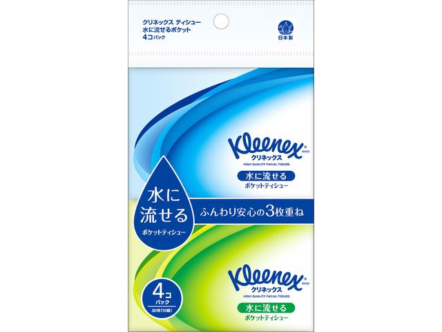 日本製紙クレシア クリネックス 水に流せるポケットティシュー 4個 x1