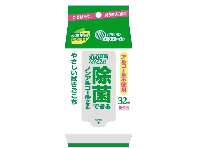 大王製紙株 エリエール除菌できるノンアルコールタオル携帯用32枚 x1