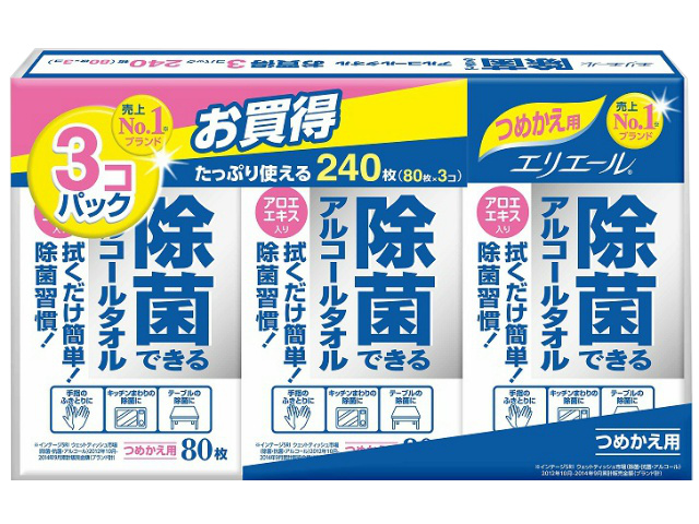 大王製紙 エリエール除菌アルコールタオル詰替 80枚X3P x1