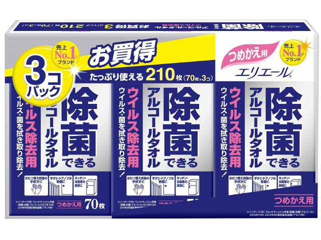 大王製紙 エリエール除菌ウイルス詰替 70枚X3P x1