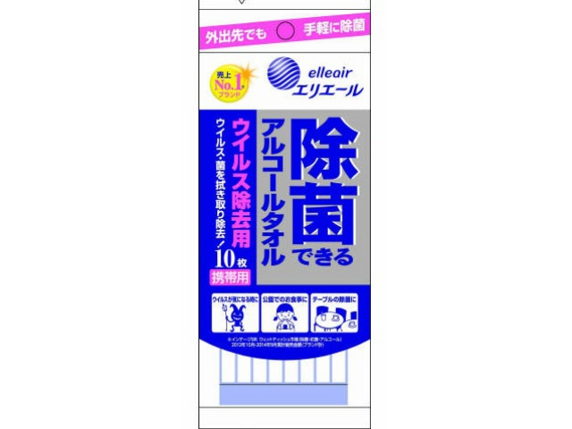 大王製紙 エリエール除菌アルコールタオルウイルス携帯 10枚 x1
