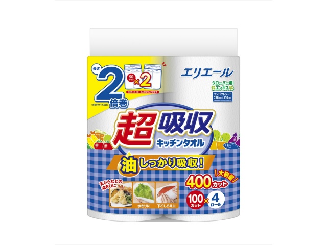 大王製紙 エリエール超吸収キッチンタオル4R(100カット)x12