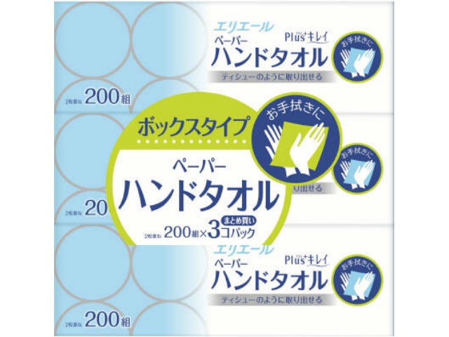 大王製紙 プラスキレイペーパーハンドタオルB200W3Px1
