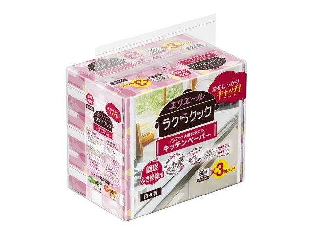 大王製紙 エリエールラクらクックパパッと手軽に使えるキッチンペーパー80W3個 x1