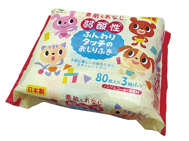 ライフ堂 弱酸性ふんわりタッチのおしりふき80枚3Px1