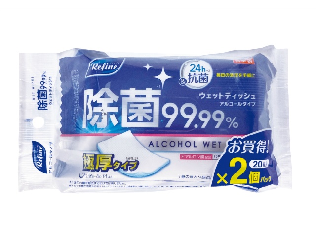 ライフ堂 極厚AL除菌おでかけウェット20枚2Px1