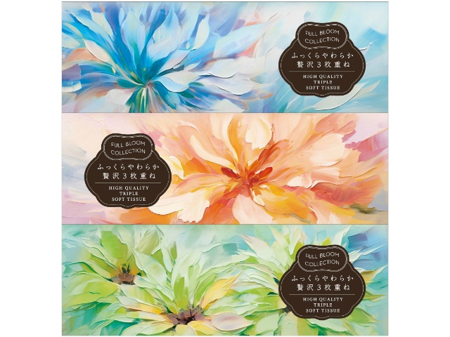 河野製紙 FULL BLOOM COLLECTIONぜい沢3枚重ねティシュ3個パック 130組x1
