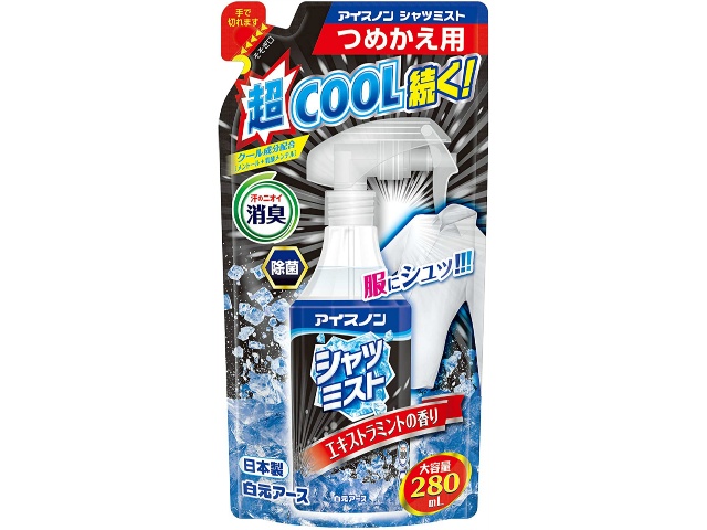 白元アース アイスノン シャツミスト エキストラミントの香り 大容量 つめかえ用 280ML