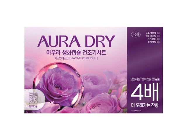 トイレタリージャパン 香りサフロン柔軟剤AURADRY生花カプセルドライシートピオニーローズ 40枚x1