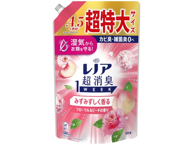 P&G レノア超消臭1weekみずみずしく香るフローラル&ピーチの香りつめかえ用超特大サイズ 1380mLx1