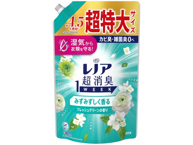 P&G レノア超消臭1weekみずみずしく香るフレッシュグリーンの香りつめかえ用超特大サイズ 1380mLx1