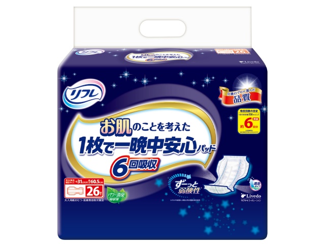 リブドゥコーポレーション リフレ お肌のことを考えた1枚で一晩中安心パッド 6回吸収 26枚