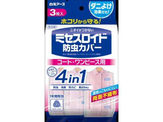 白元アース ミセスロイド防虫カバー コート・ワンピース用 1年防虫 3枚